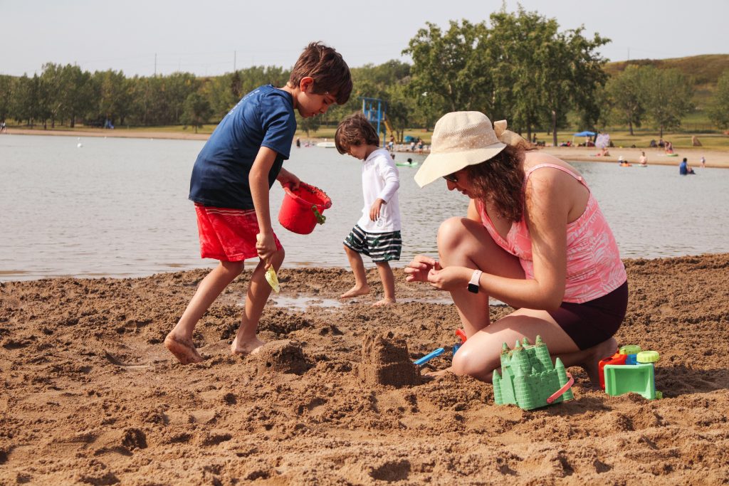 You can use different materials to play on the beach, such as paintbrush, pool noodles, tic tac toe, buckets, balls, nets, colors, and more. Think of an activity and collect materials before you head for the beach.