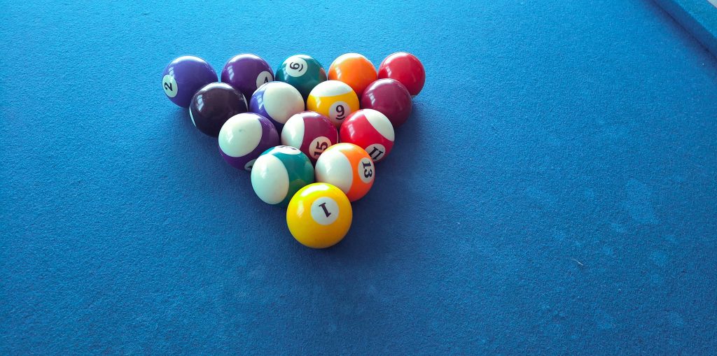 - 8-Ball pool is played between two players or two teams. Players take turns trying to pocket their designated balls.