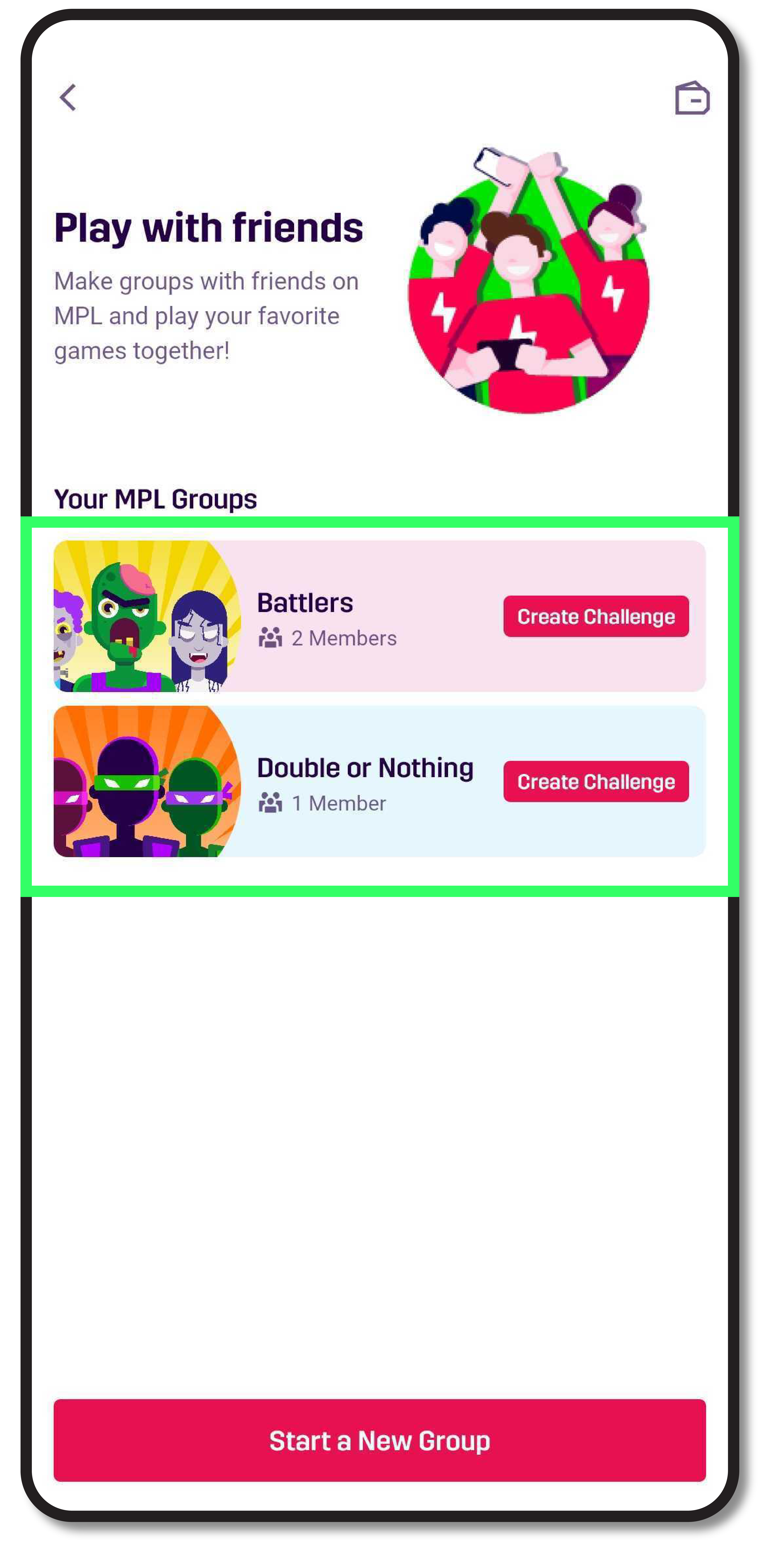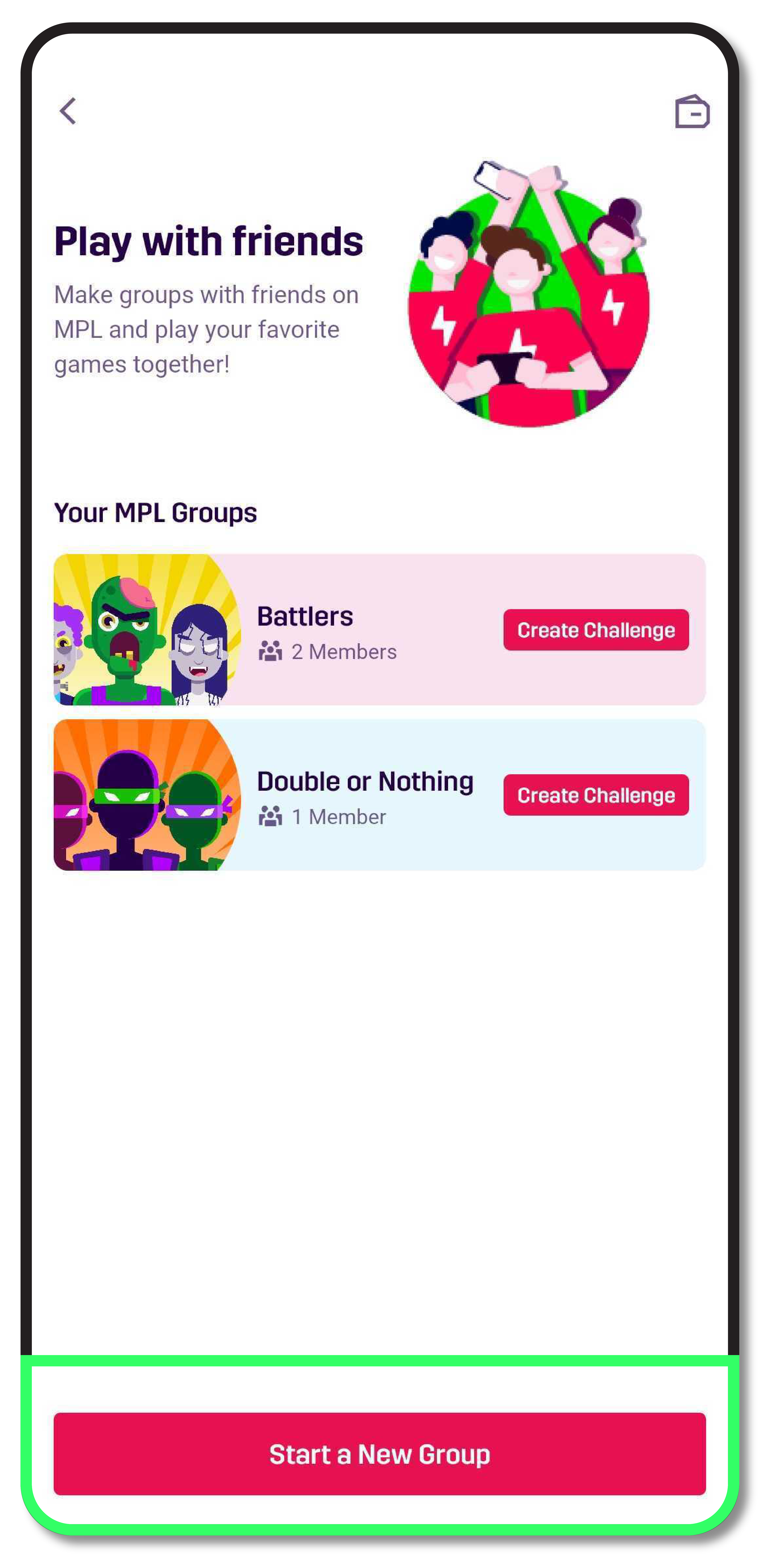 - Fire up the MPL app and scroll down to view the “Play with Friends” feature.