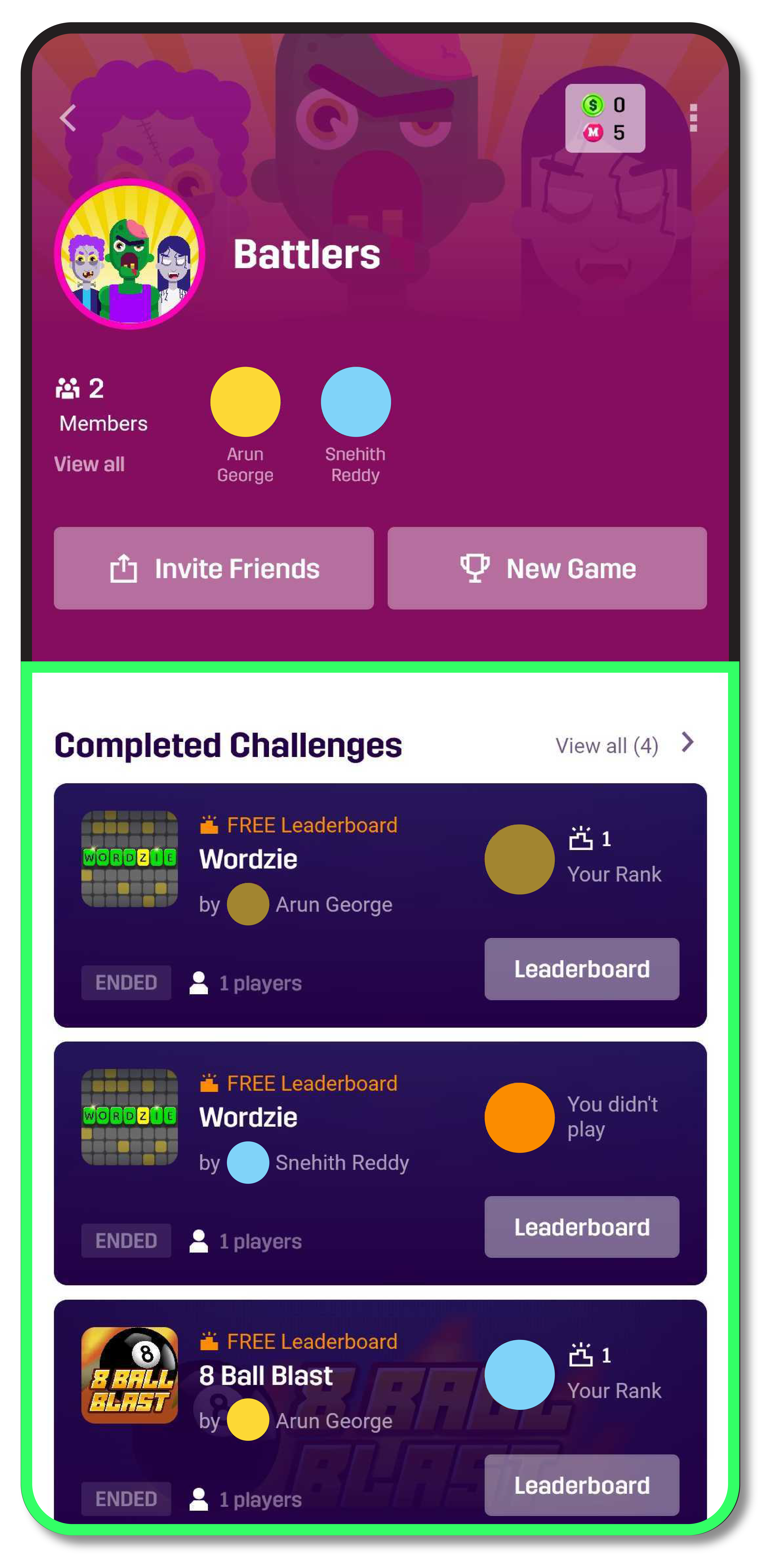 - Keep playing and see who tops the leaderboard in each game!