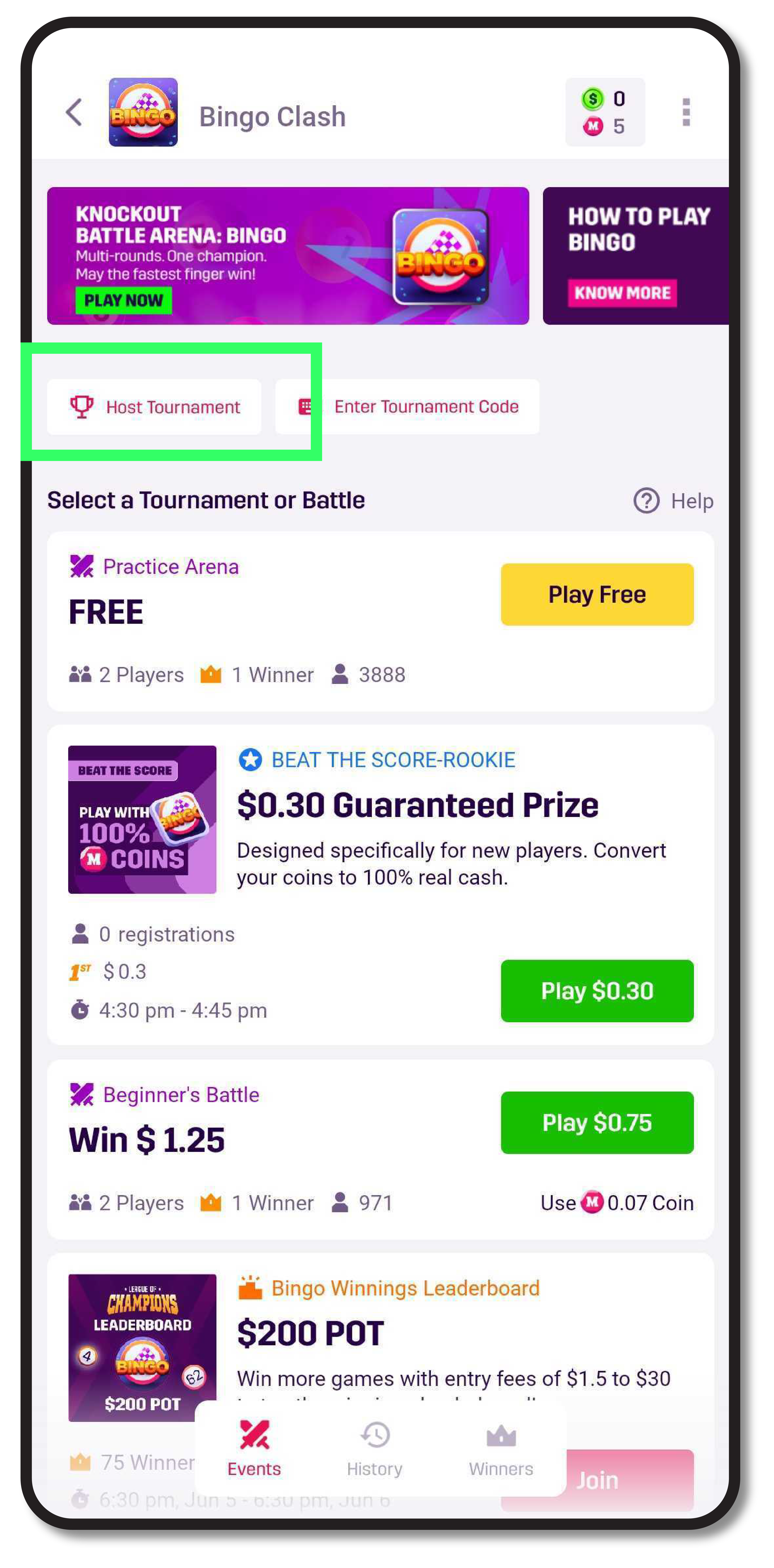 - If you wish to join someone else’s tournament, head to the respective game’s battle/tournament dashboard.